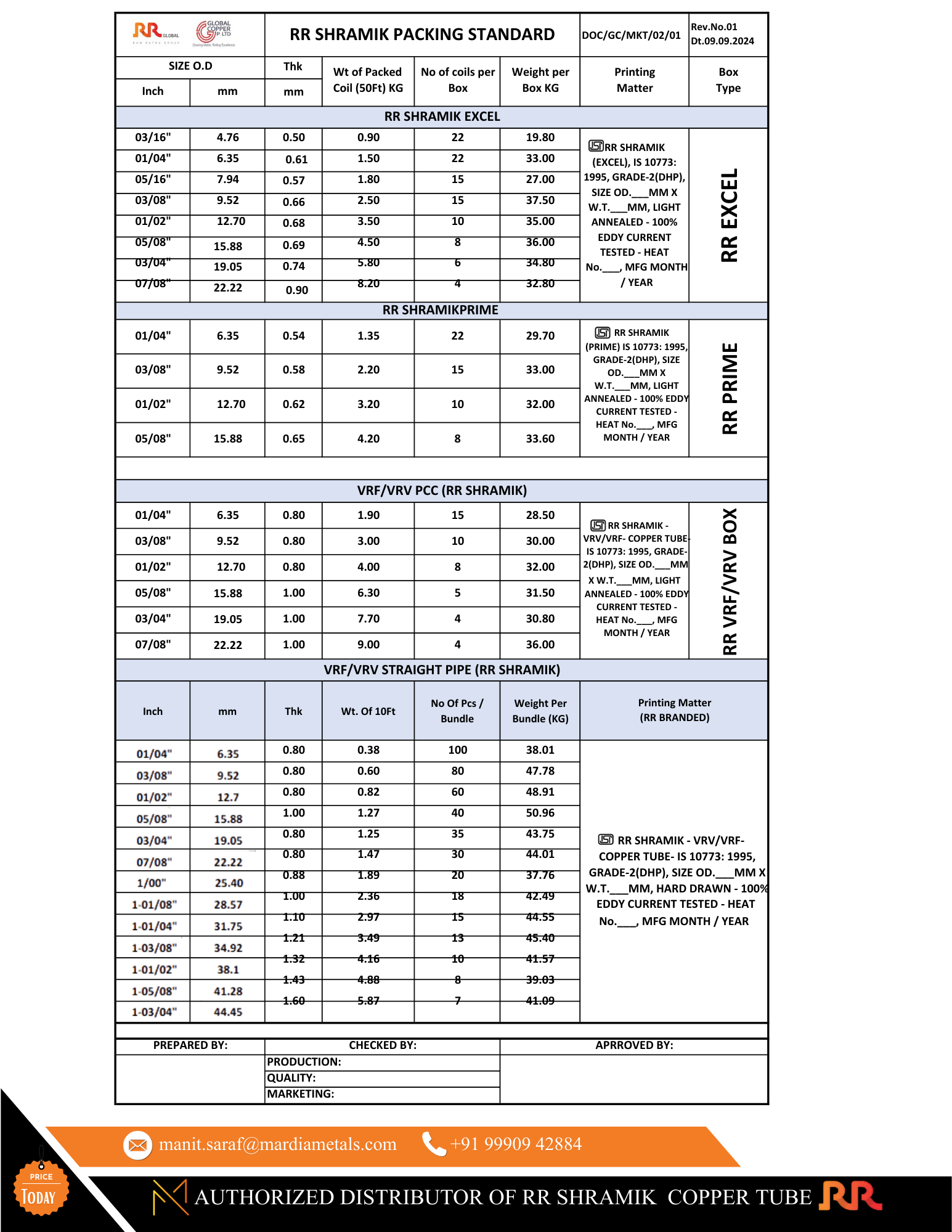 VRV-grade copper tubes are specially engineered for large-scale central air-conditioning systems where efficiency, pressure handling, and reliability matter the most.